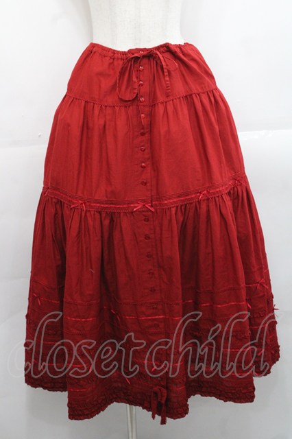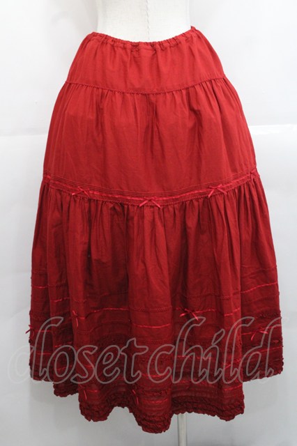 PINK HOUSE / サテンリボン使いローンスカート 赤 I-25-11-12-077-LO-SK-SA-ZI
