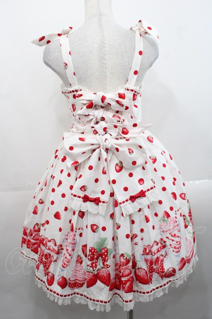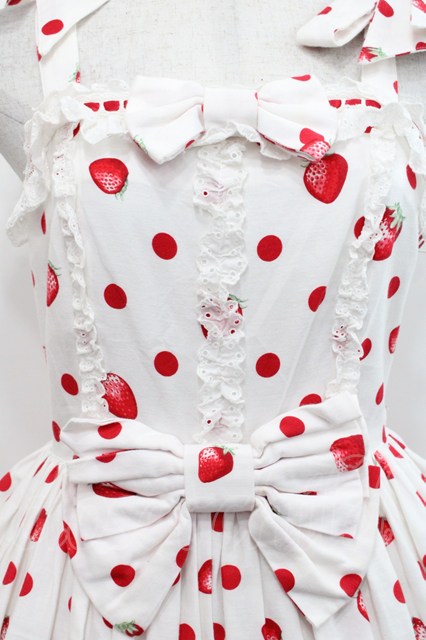 Angelic Pretty / Milky Berryジャンパースカート 白 I-25-11-12-027-AP-OP-SA-ZI