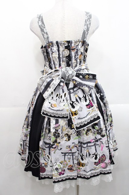 metamorphose / いろどり花てまり タックジャンパースカート 黒 I-25-11-12-038-ME-OP-SA-ZI