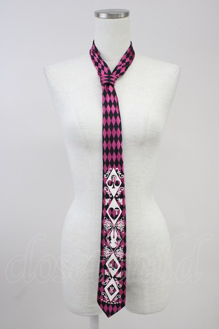 PUTUMAYO / トランプうさぎダイヤ柄ネクタイ ピンクX黒X白 T-25-11-14-011-PT-ZA-SA-ZT