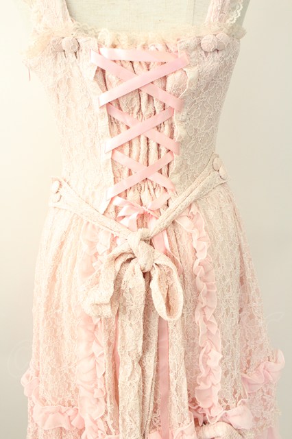 metamorphose / 総レースドレープジャンパースカート ピンク T-25-11-14-020-ME-OP-SA-ZT