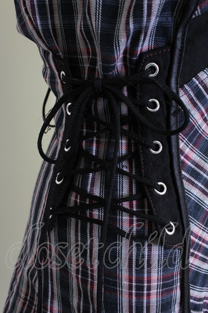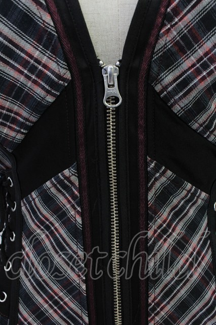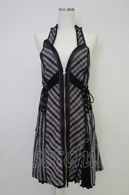 Ozz Croce / フロントZIPナナメチェックビスチェジャンパースカート 黒X赤チェック T-25-11-14-030-OO-OP-SA-ZT