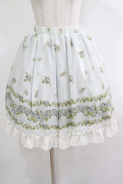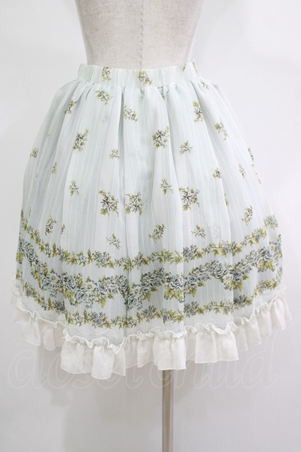 axes femme / ローズ&ストライププリントスカート M サックス H-25-11-19-016-AX-SK-NS-ZH