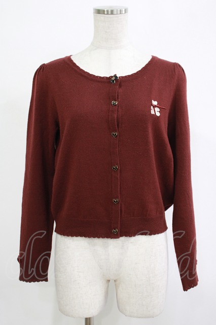 Secret Honey / クマ刺繍リボンボタンカーディガン Free ボルドー H-25-11-19-041-CA-TO-NS-ZH