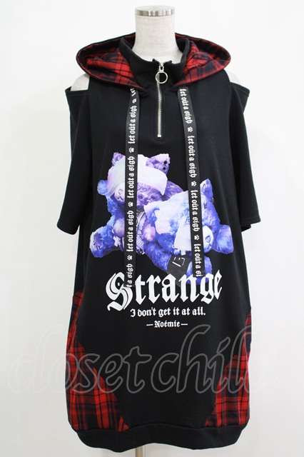 NOEMIE / チェックネコ耳ハーフジップユニセックスパーカー M ブラック H-25-11-19-047-LO-TO-NS-ZH [2100030000078222-H-25-11-19-047-LO-TO-NS-ZH]