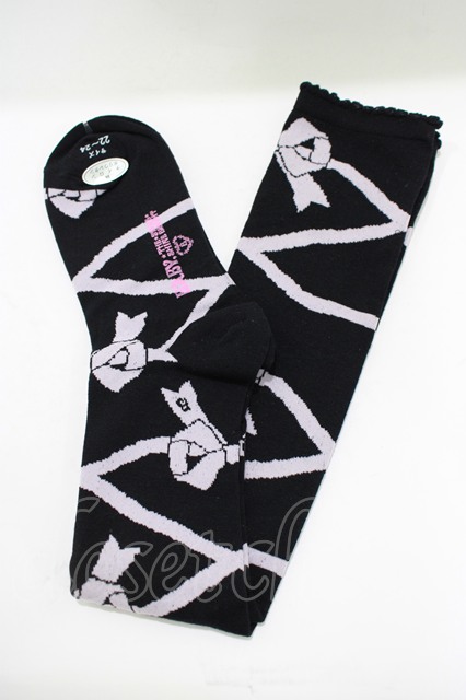 BABY,THE STARS SHINE BRIGHT / レースアップリボン柄オーバーニーソックス ブラック/ピンク H-25-11-19-068-BA-ZA-NS-ZH [2100030000078168-H-25-11-19-068-BA-ZA-NS-ZH]