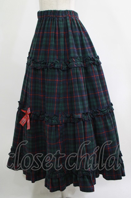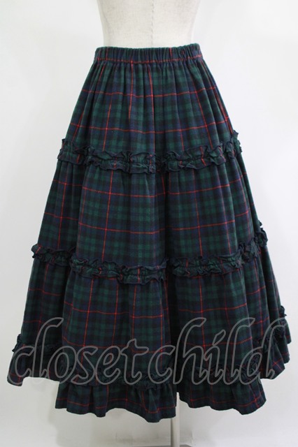 Nile Perch / チェックティアードスカート Free グリーン H-25-11-19-014-LO-SK-NS-ZH