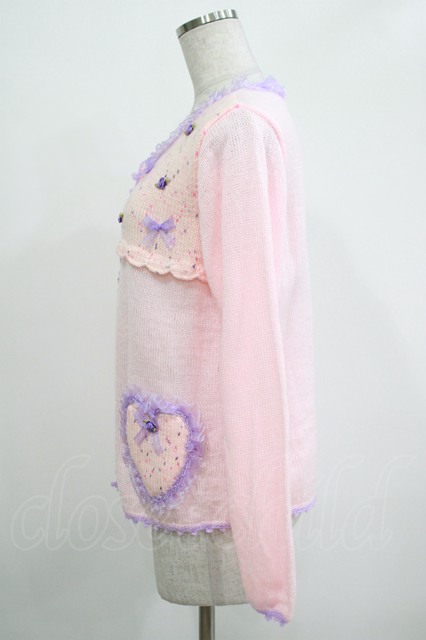 Nile Perch / ハートポケットニットカーディガン Free ピンク H-25-11-19-039-LO-TO-NS-ZH