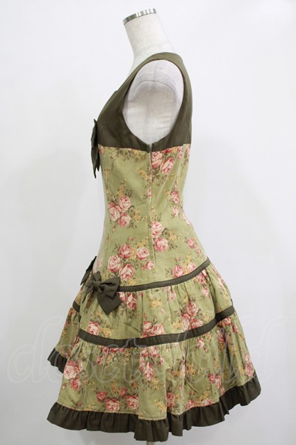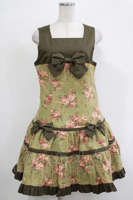 Heart E / 花柄切替ジャンパースカート Free グリーン H-25-11-19-022-LO-OP-NS-ZH [2100030000078157-H-25-11-19-022-LO-OP-NS-ZH]