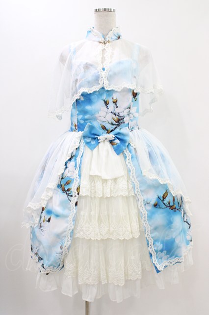 玉 青 (海外ロリータブランド) / ケープ付きジャンパースカートセット M ブルー H-25-11-20-1033-0-OP-NS-ZH