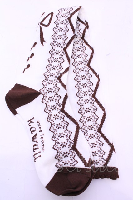 axes femme kawaii / レースアップ柄オーバーニー ブラウン O-25-11-14-1061-AX-ZA-OW-OS