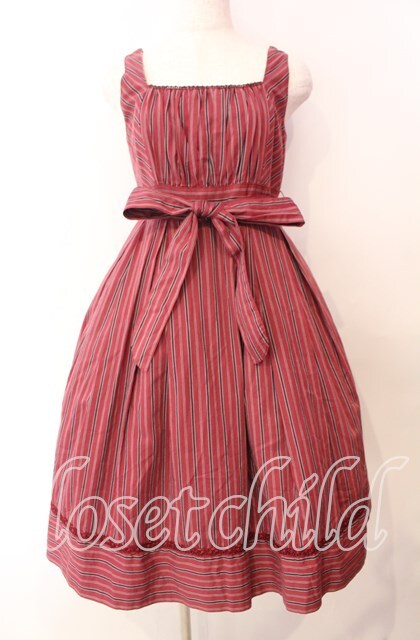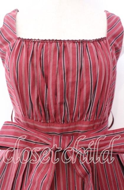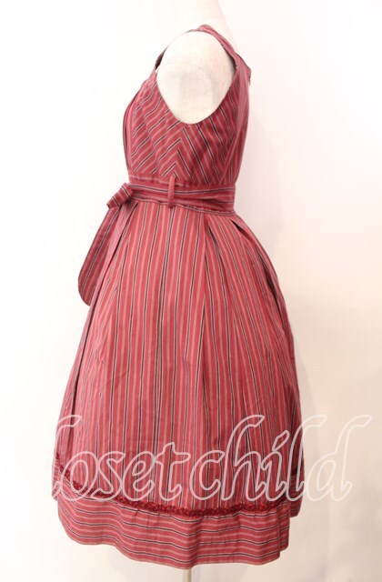 Victorian maiden / レジメンタルストライプリボンワンピース ワイン O-25-11-14-008-CL-OP-OW-OS