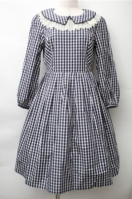 Emily Temple cute / 襟レースギンガムワンピース 紺x白 S-25-11-13-064-ET-OP-HR-ZS [2100020000033865-S-25-11-13-064-ET-OP-HR-ZS]
