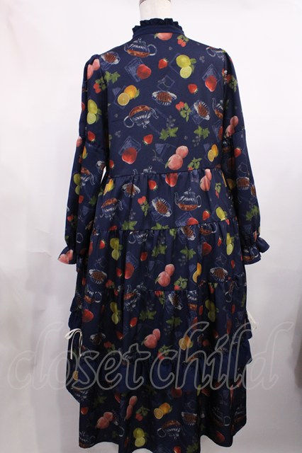 axes femme / フルーツティ柄ティアードワンピース M ネイビー H-25-11-15-011-AX-OP-NS-ZH