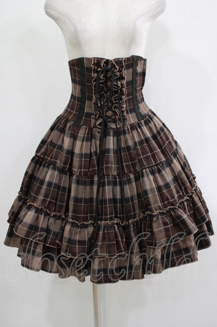 ATELIER PIERROT / チェックフリルコルセットスカート ブラウン H-25-11-20-002-EL-SK-KB-ZH