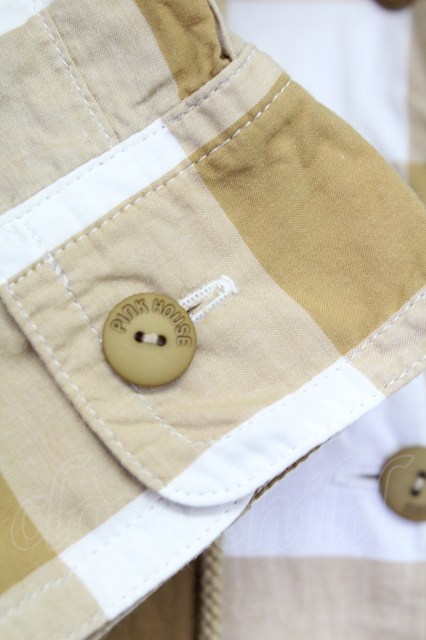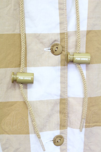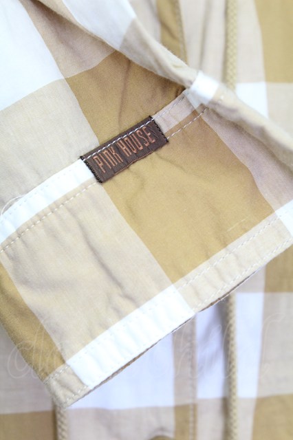 PINK HOUSE / ギンガムチェックフードシャツ L ブラウンX白 T-25-11-15-012-LO-BL-SA-ZT [2100060000043091-T-25-11-15-012-LO-BL-SA-ZT]