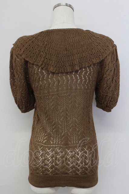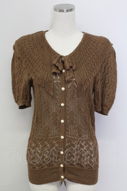 INGEBORG / ケープ風襟半袖ニットカーディガン ブラウン T-25-11-15-016-LO-TO-SA-ZT