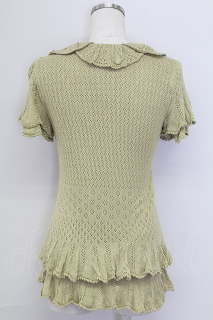 PINK HOUSE / カメリアモチーフ襟半袖ニットカーディガン グリーン T-25-11-15-029-LO-TO-SA-ZT [2100060000043084-T-25-11-15-029-LO-TO-SA-ZT]