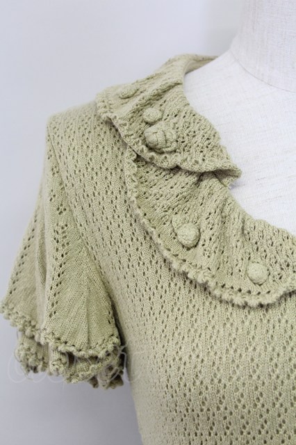 PINK HOUSE / カメリアモチーフ襟半袖ニットカーディガン グリーン T-25-11-15-029-LO-TO-SA-ZT