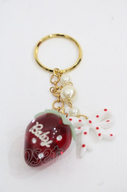 BABY,THE STARS SHINE BRIGHT / キャンディーストロベリーとリボンのキーホルダー 赤X白Xゴールド I-25-11-14-106-BA-AC-SA-ZI
