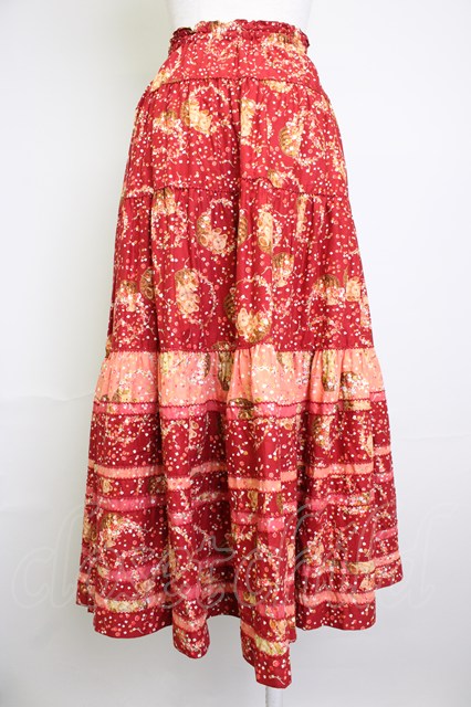 PINK HOUSE / Flower Picnic プリントパッチワークスカート 赤 T-25-11-20-020-LO-SK-ET-ZT