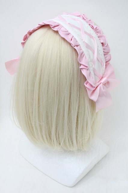 Ank Rouge / ジャージヘッドドレス ピンクx白 S-25-11-10-001-CA-AC-HR-ZS