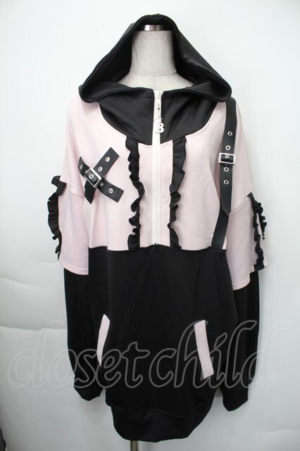 Ank Rouge / Be mqin プルオーバー 黒xピンク S-25-11-10-023-CA-TS-HR-ZS