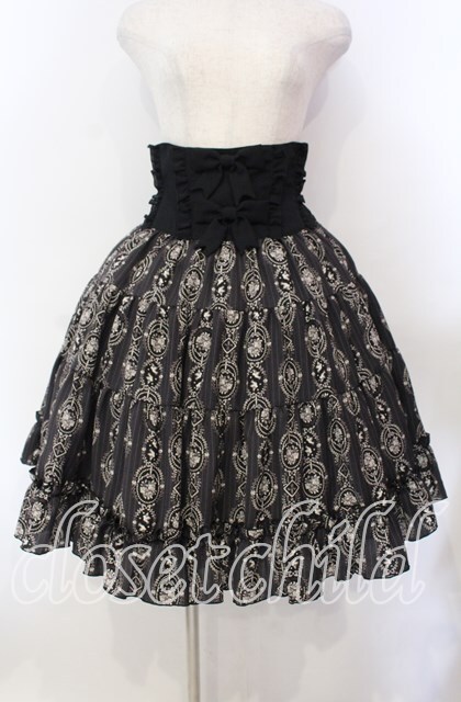 Innocent World / バラと小鳥のストライプスカート M クロ O-25-11-15-011-IW-SK-IG-OS