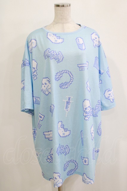 LISTEN FLAVOR / 8bitフルグラフィックビッグTシャツ F ライトブルー H-25-11-21-1069-PU-TO-KB-ZH [2100030000075188-H-25-11-21-1069-PU-TO-KB-ZH]
