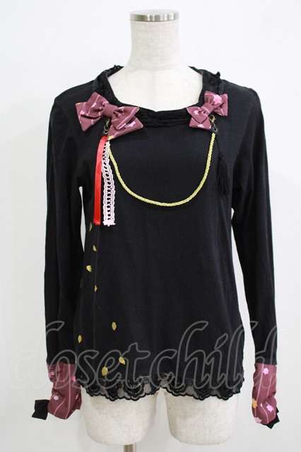 gouk / 和柄切替チャーム付カットソー 黒 H-25-11-21-1062-GO-TO-KB-ZH [2100030000078488-H-25-11-21-1062-GO-TO-KB-ZH]