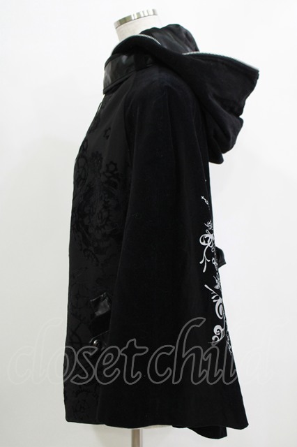 Sixh / 別珍切替フードポンチョケープ ブラック H-25-11-21-1073-HN-JA-KB-ZH