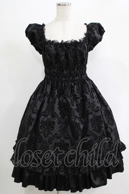 Drug Honey / シャーリングフロッキーワンピース 黒 H-25-11-21-1003-PU-OP-KB-ZH