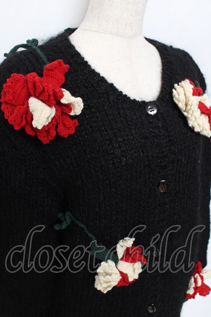 INGEBORG / カーネーションモチーフのニットカーディガン F 黒 Y-25-11-15-085-LO-TO-SZ-ZY