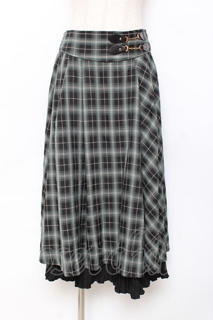 axes femme / 裾プリーツチェック柄スカート グリーン Y-25-11-15-135-AX-SK-SZ-ZY