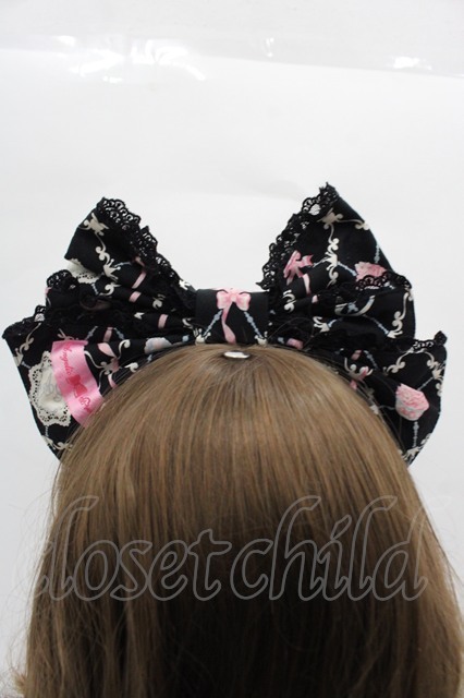 Angelic Pretty / メモリアルケーキプリンセスリボンカチューシャ 黒 I-25-11-15-121-AP-AC-SA-ZI