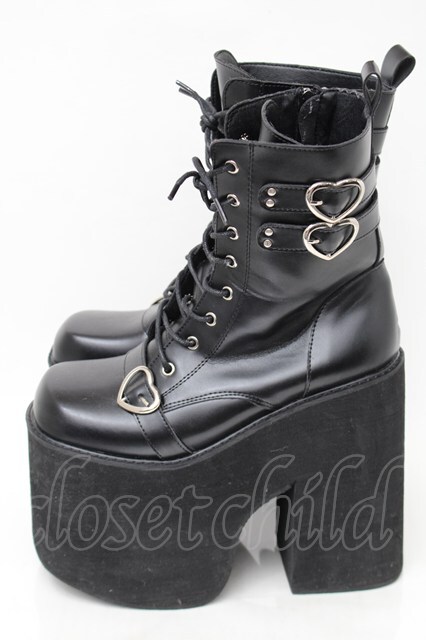 NieR Clothing / ハートバックル厚底ブーツ 黒 S-25-11-14-001-PU-SH-HR-ZS