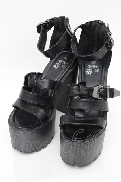 NieR Clothing / ベルトデザイン厚底サンダル 黒 S-25-11-14-003-PU-SH-HR-ZS
