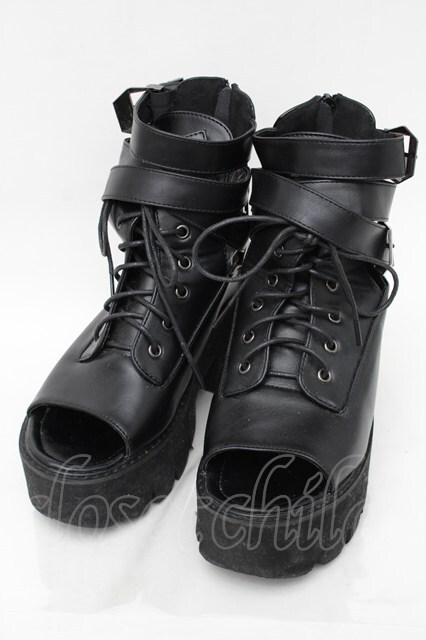 NieR Clothing / ベルトデザイン厚底サンダル 黒 S-25-11-14-004-PU-SH-HR-ZS