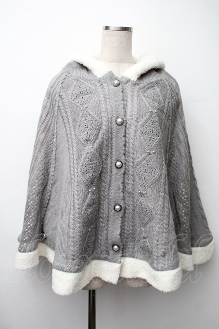 axes femme / 裏ボアニットポンチョ グレー S-25-11-14-013-AX-JA-AS-ZS