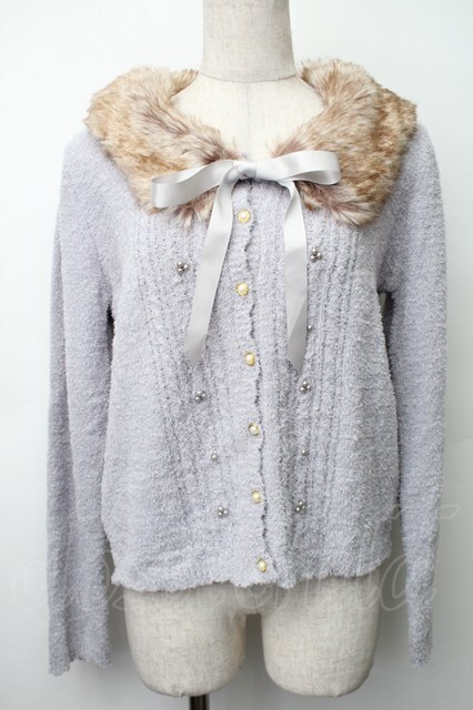axes femme / ファー襟ニットカーディガン サックス S-25-11-14-019-AX-TO-AS-ZS