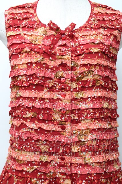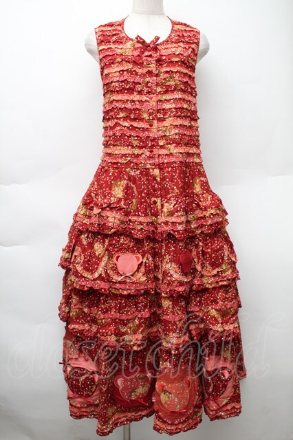 PINK HOUSE / Flower Picnic プリントパッチワークワンピース 赤 S-25-11-14-041-LO-OP-AS-ZS [2100070000053094-S-25-11-14-041-LO-OP-AS-ZS]