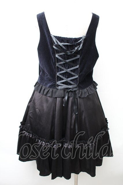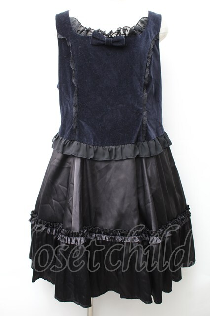 Rosina Blue / ベロア切替ジャンパースカート 紺x黒 S-25-11-14-047-LO-OP-HR-ZS