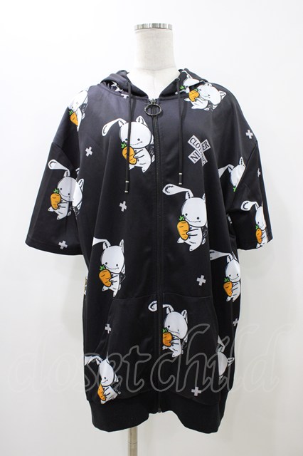 NieR Clothing / 総柄ZIP半袖パーカー ブラック H-25-11-23-051-PU-TO-KB-ZH
