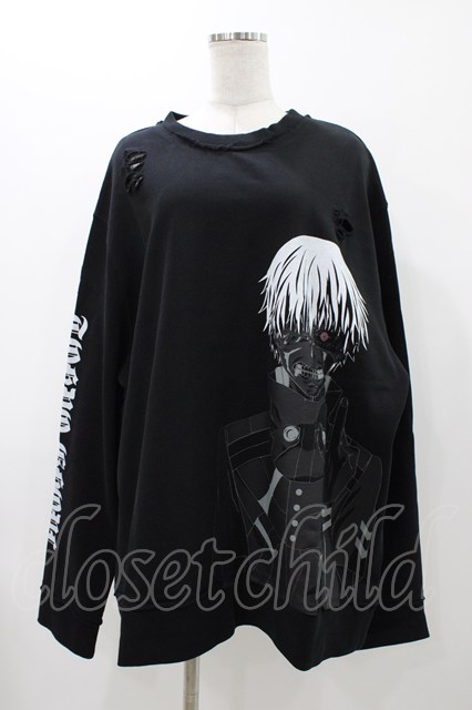 QOOZA / 東京喰種×QOOZA金木研 ダメージスウェット ブラック H-25-11-23-031-0-TO-KB-ZH