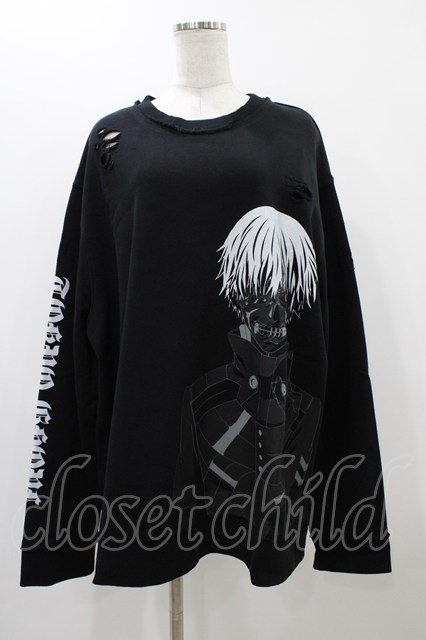 QOOZA / 東京喰種×QOOZA金木研 ダメージスウェット ブラック H-25-11-23-038-0-TO-KB-ZH