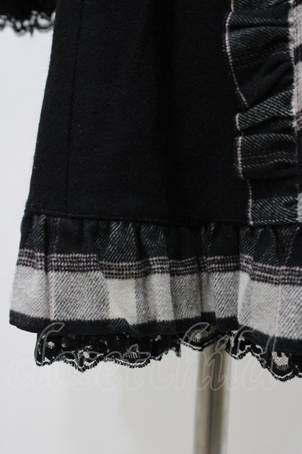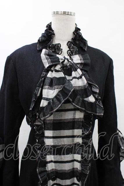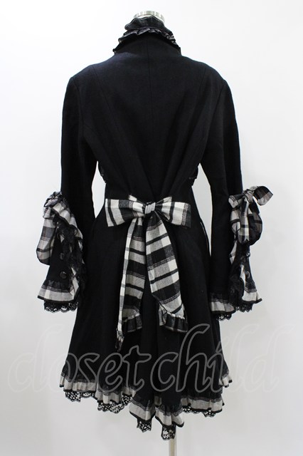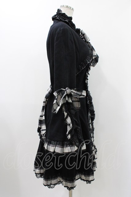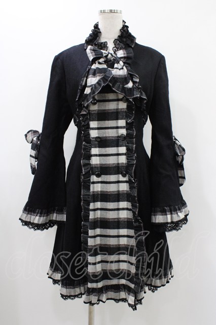 MARBLE / チェック切替レイヤード風姫袖コート ブラック H-25-11-23-006-GO-CO-KB-ZH