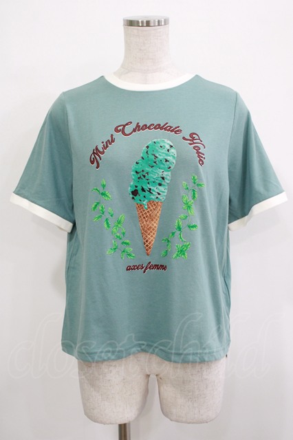 axes femme / チョコミントプリントTシャツ Free ミント H-25-11-22-1035-AX-TO-NS-ZH