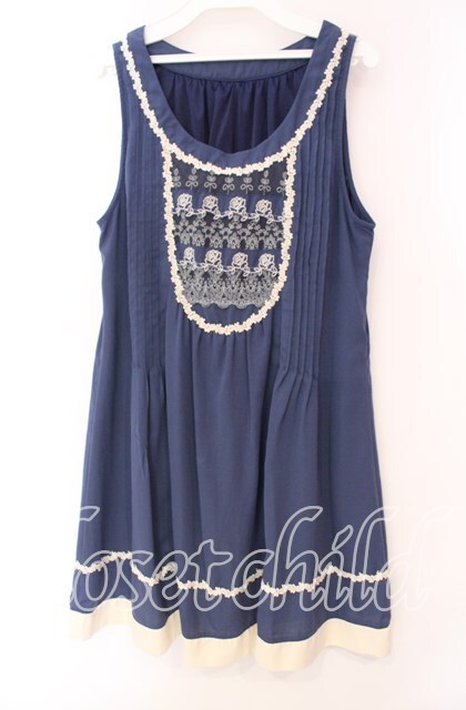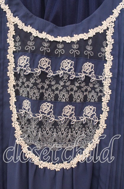 axes femme / ローズ刺繍タックシフォンワンピース ブルー O-25-11-17-064-AX-OP-IG-OS