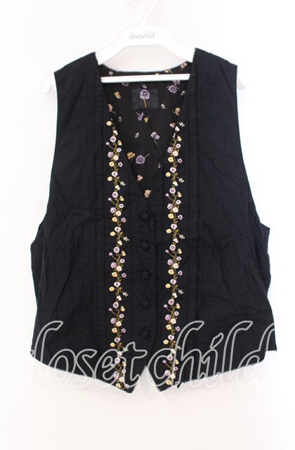 KETTY / パンジー刺繍ベスト クロ×パープル O-25-11-17-021-EL-TO-IG-OS [2100080000056402-O-25-11-17-021-EL-TO-IG-OS]