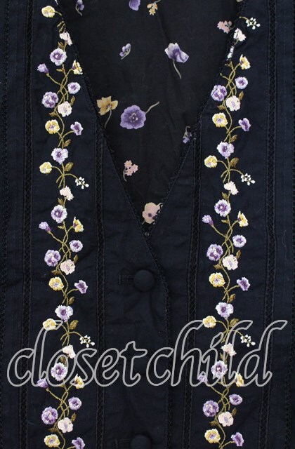 KETTY / パンジー刺繍ベスト クロ×パープル O-25-11-17-021-EL-TO-IG-OS